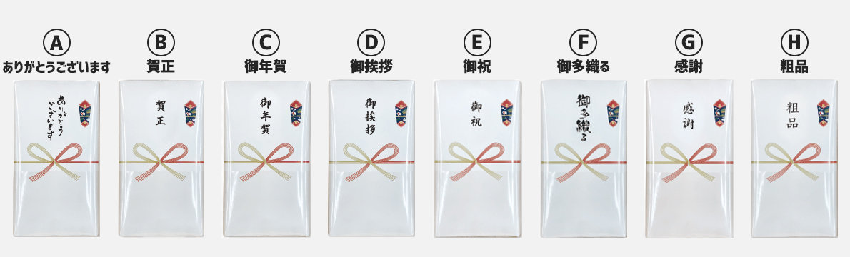 ご使用の目的に合った、のし紙を上記の8種類の中からお選びください。